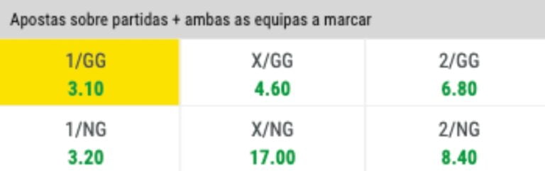 O mercado Apostas sobre Partidas + Ambas as Equipas a Marcar combinam dois elementos-chave em uma única aposta.