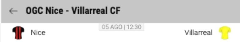 Vamos ver um exemplo do jogo amigável entre o OGC Nice x Villarreal CF.